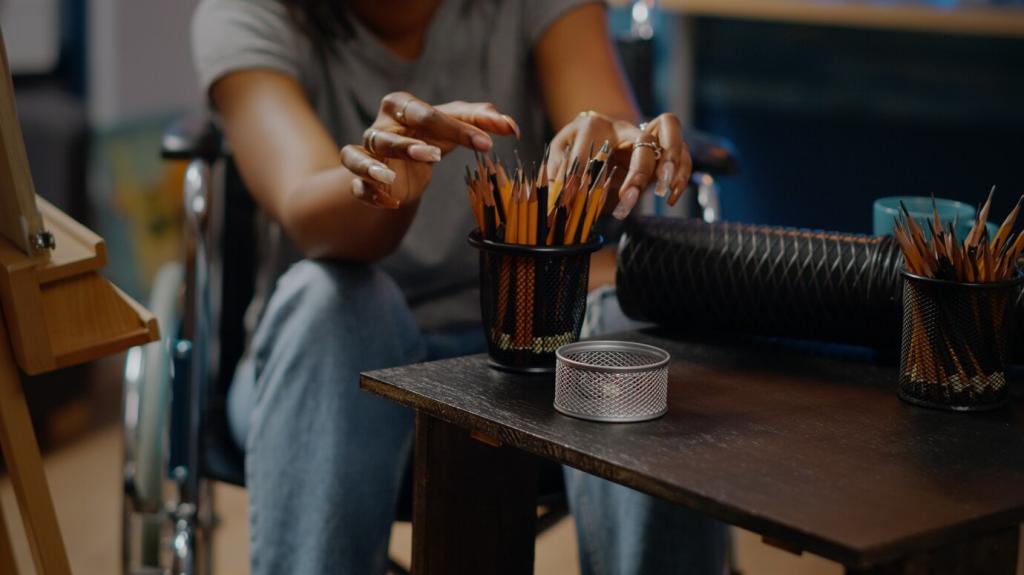 Pack a small pouch with essentials—pen, index cards, glue stick, mini watercolors, or a keyboard shortcut list. When tools are ready, hesitation fades, and your daily workshop begins before doubts get a voice.